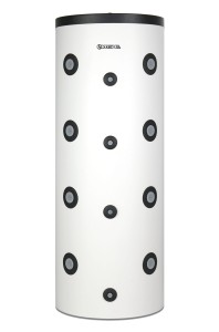 Ein nicht beschichteter Pufferspeicher mit einem Fassungsvermögen von 200 bis 1000 Litern zur Wärmespeicherung aus mehreren Heizquellen, z. B. zwei Heizkesseln und einer Solaranlage. Erhältlich in verschiedenen Ausführungen. Das Modell SVW ist zusätzlich mit einem Heizregister ausgestattet.